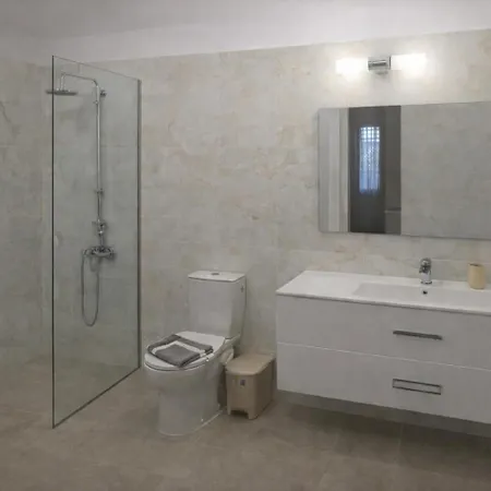 Per una maggiore comodità, il Vassos Apartments dispone di un bagno con WC separato e una doccia. Inoltre, troverai asciugacapelli, teli da bagno e pantofole.